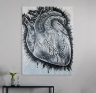 Bleeding heart – the first piece in my Monochrome Series. Marked by bold contrast and depth, this piece blends anatomical symbolism with contemporary darkness.